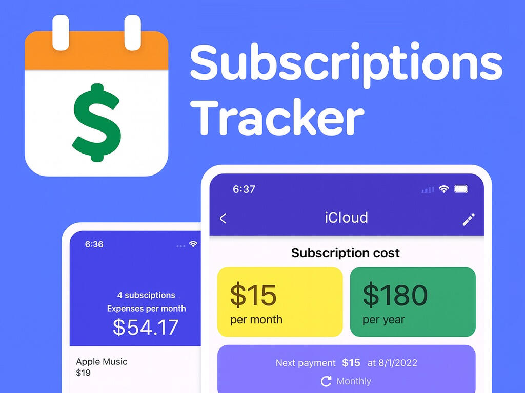 "Subscriptions Tracker" allows you to visually estimate how much you spend on subscriptions per month and per year.You can add subscriptions with different payment periods and in different currencies, and the application will calculate the amount spent for the period.All data is presented in a convenient and readable form, which allows you to assess costs at a glance and understand what money is spent on.With our application, you will not forget which subscriptions you have signed up, which you can unsubscribe from, and when the next payment is due.Subscription information in one place allows you to plan your budget and find where you can save money.Key features: