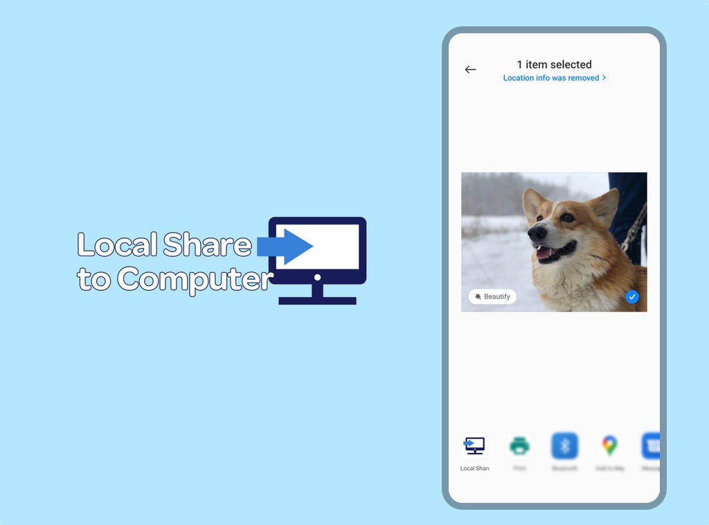 The application allows you to easily send a file, text or link from your phone to your computer. You do not need to install any software on your computer or create a login somewhere. You simply select "Local Share" from the "Share" menu on your phone and get the 1 step instruction on how to get the file on your computer or other device.All operating systems are supported: Windows, macOS, Linux, Android and iOS.All files are transferred exclusively over the local network, so no one on the Internet will have access to them. It's fast and safe.Key features: